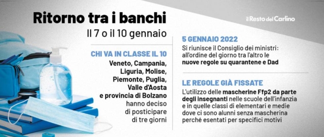 Il 5 gennaio il governo torna a riunirsi per decidere le nuove misure che riguardano il lavoro e la scuola. Saldi 2022 ci siamo. Governo conferma rientro a scuola dal 10 gennaio.
